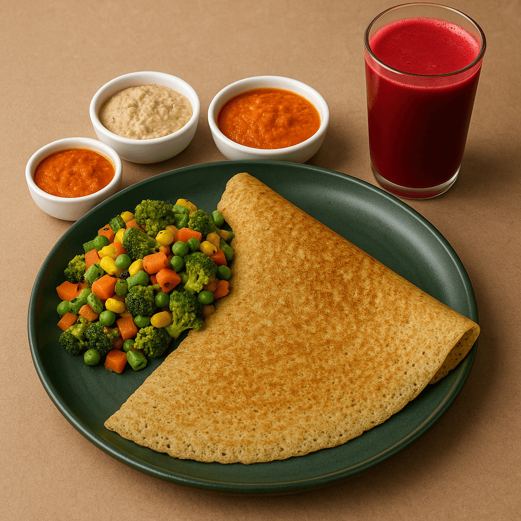1 Millet Dosa (no butter/cheese) + Mixed Veg Add-on + Carrot-Beet Juice